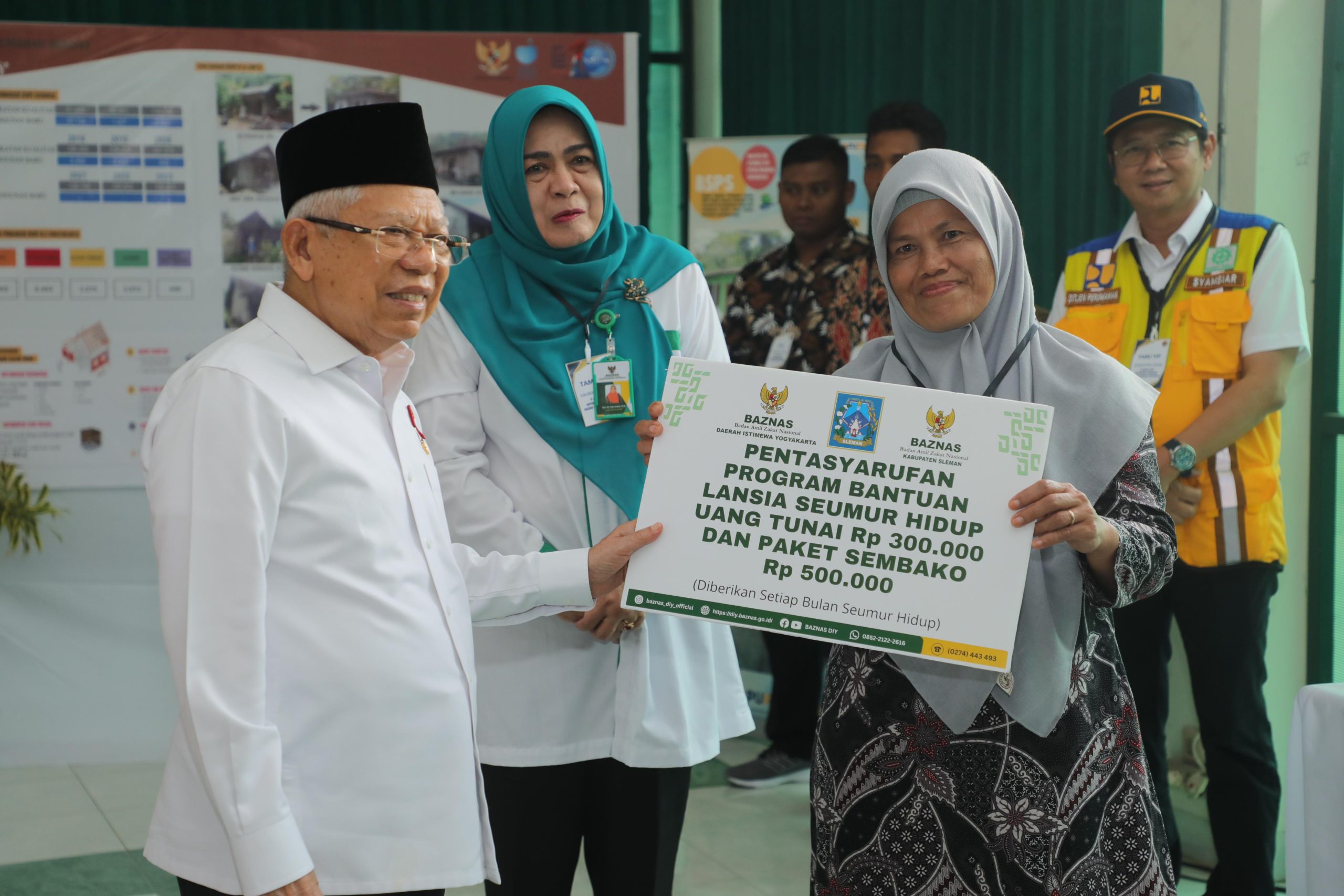Pada kesempatan tersebut, Wapres Ma’ruf Amin juga menyerahkan bantuan secara simbolis program bantuan lansia seumur hidup berupa uang tunai senilai Rp 300rb dan paket sembako sebesar Rp 500 ribu bagi para penerima manfaat.