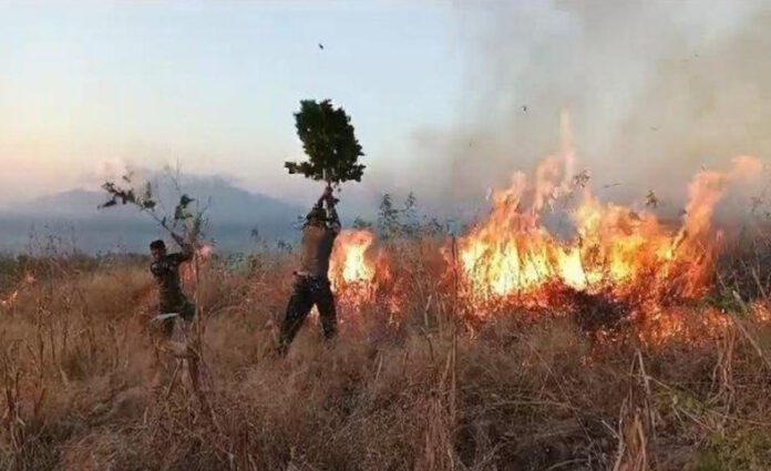 “Kita sudah berupaya memadamkan api dengan ranting pohon tapi kobaran api semakin membesar,” ujarnya