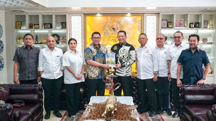 RADARNASIONAL – Ketua MPR RI sekaligus Wakil Ketua Umum Partai Golkar dan Kepala Badan Polhukam KADIN Indonesia Bambang Soesatyo (Bamsoet) menerima “Peta Jalan Indonesia Emas 2045. Membangun Masa Depan Indonesia, Mulai Hari Ini”, yang disusun secara inklusif dan kolaboratif sebagai persembahan KADIN untuk Indonesia, yang mencerminkan masukan terbaik dari komunitas dunia usaha dan pekerja dengan semangat ‘Merah Putih’. Peta Jalan tersebut sebelumnya juga sudah diserahkan KADIN Indonesia kepada Presiden Joko Widodo dan Wakil Presiden KH Maruf Amin.