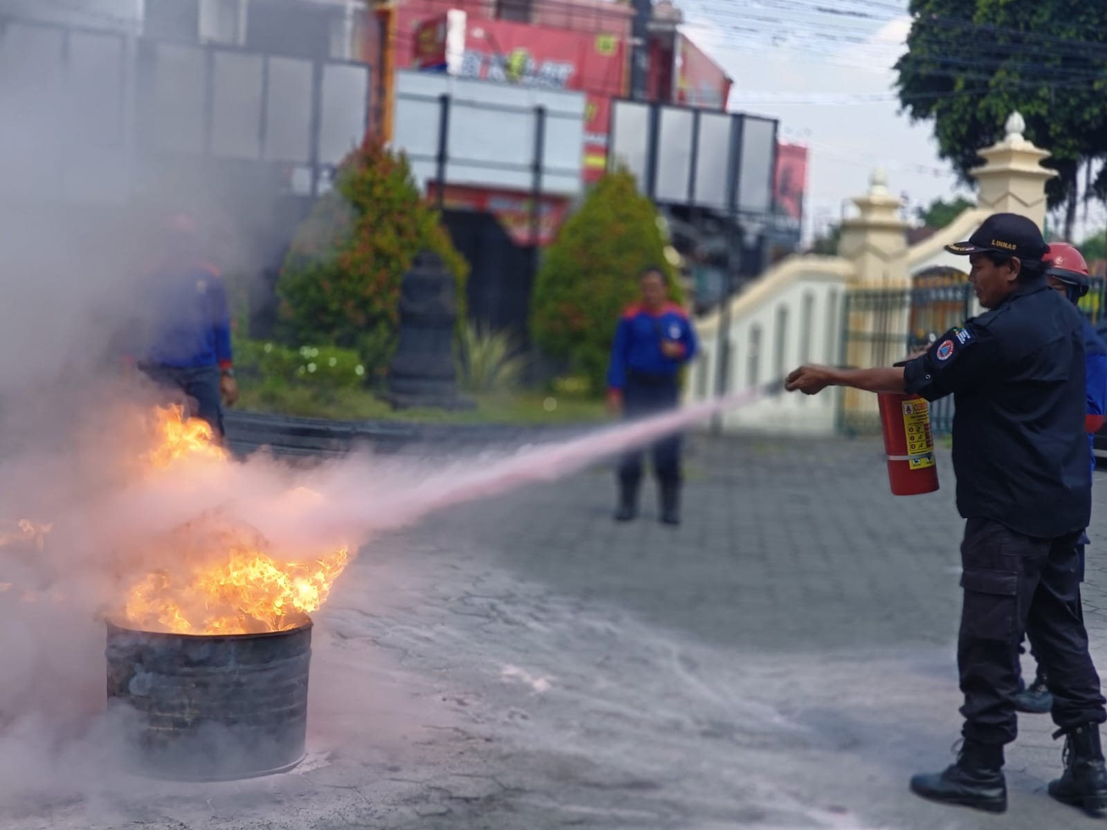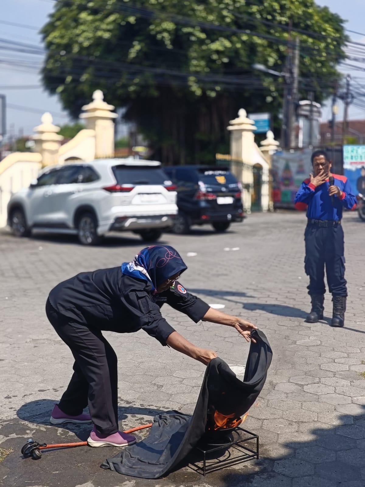 Dalam pelatihan ini juga dilaksanakan gladi lapang atau latihan memadamkan api di halaman Balai Kalurahan Condongcatur.