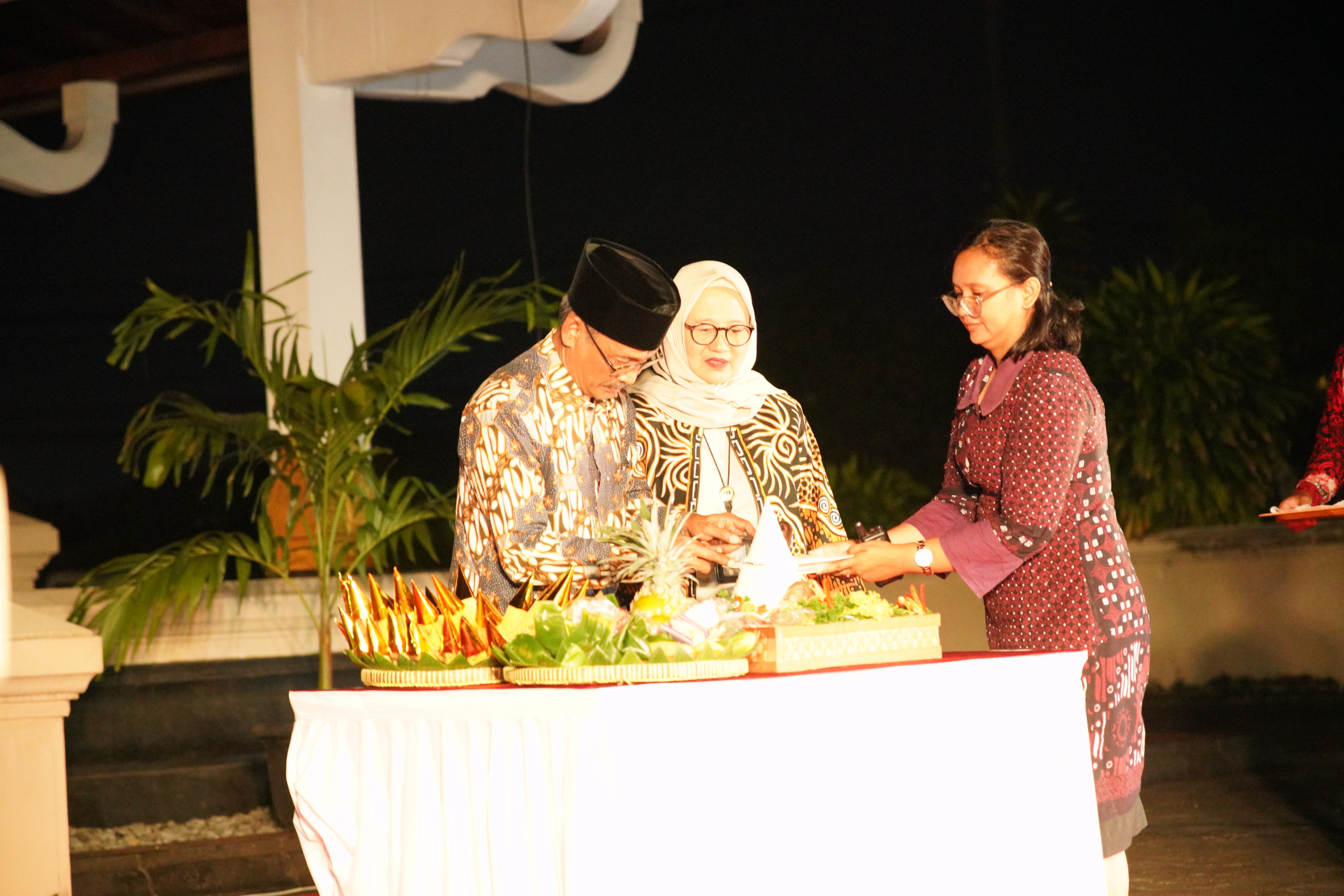 Pemotongan tumpeng Malam Tirakatan menandai peringatan Hari Kesaktian Pancasila yang berlangsung di komplek Monumen Pahlawan Pancasila Sakti, Kentungan, Condongcatur. (Foto: Penrem 072/Pamungkas for Radar Nasional)