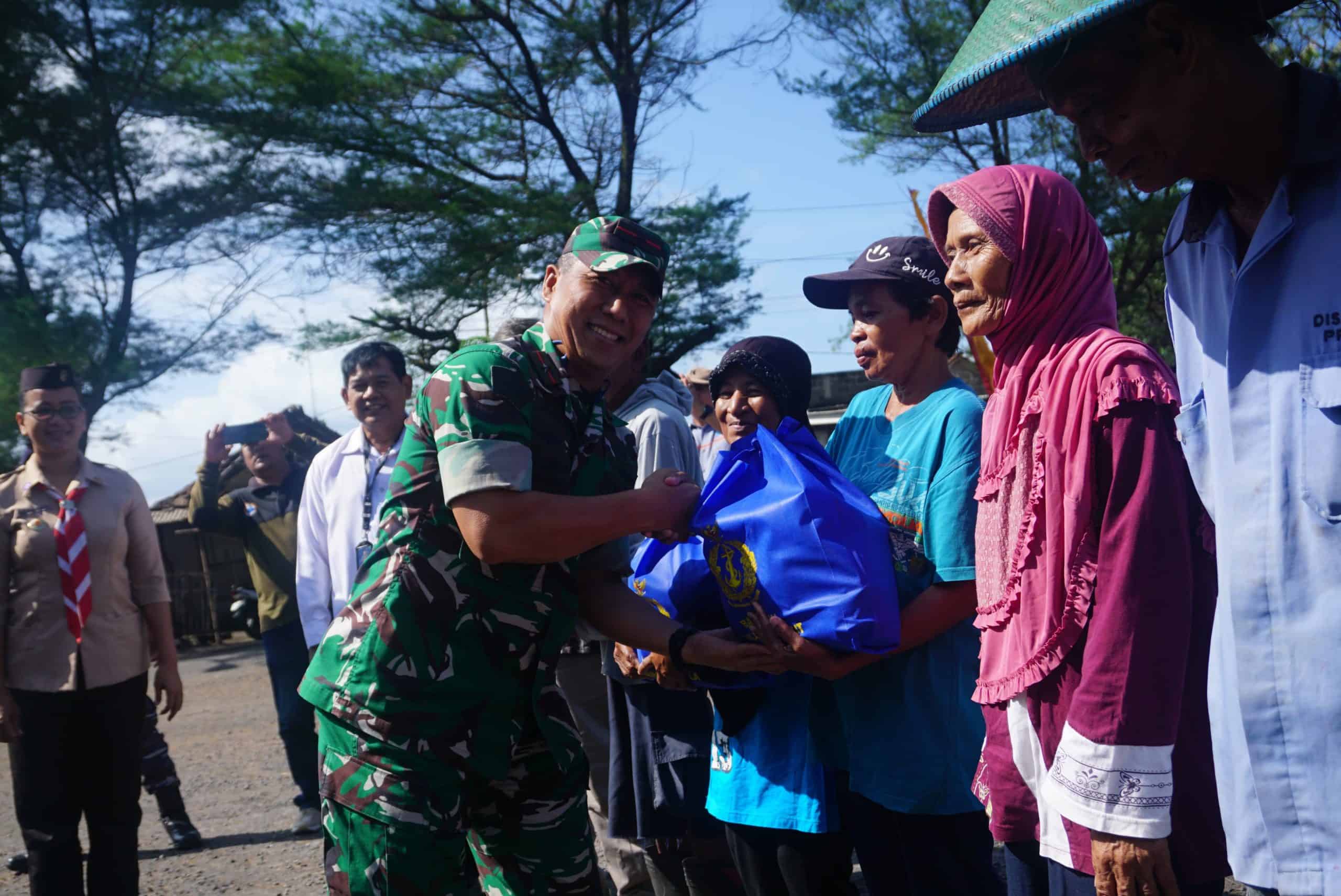 Seusai upacara dilanjutkan dengan penyerahan bantuan berupa paket Sembako secara simbolis kepada perwakilan warga masyarakat dan mengunjungi Posko bencana serta peninjauan spot pengelohan ikan di Kantor Kelurahan Srigading, Sanden.(San)