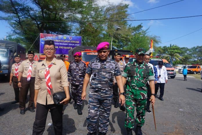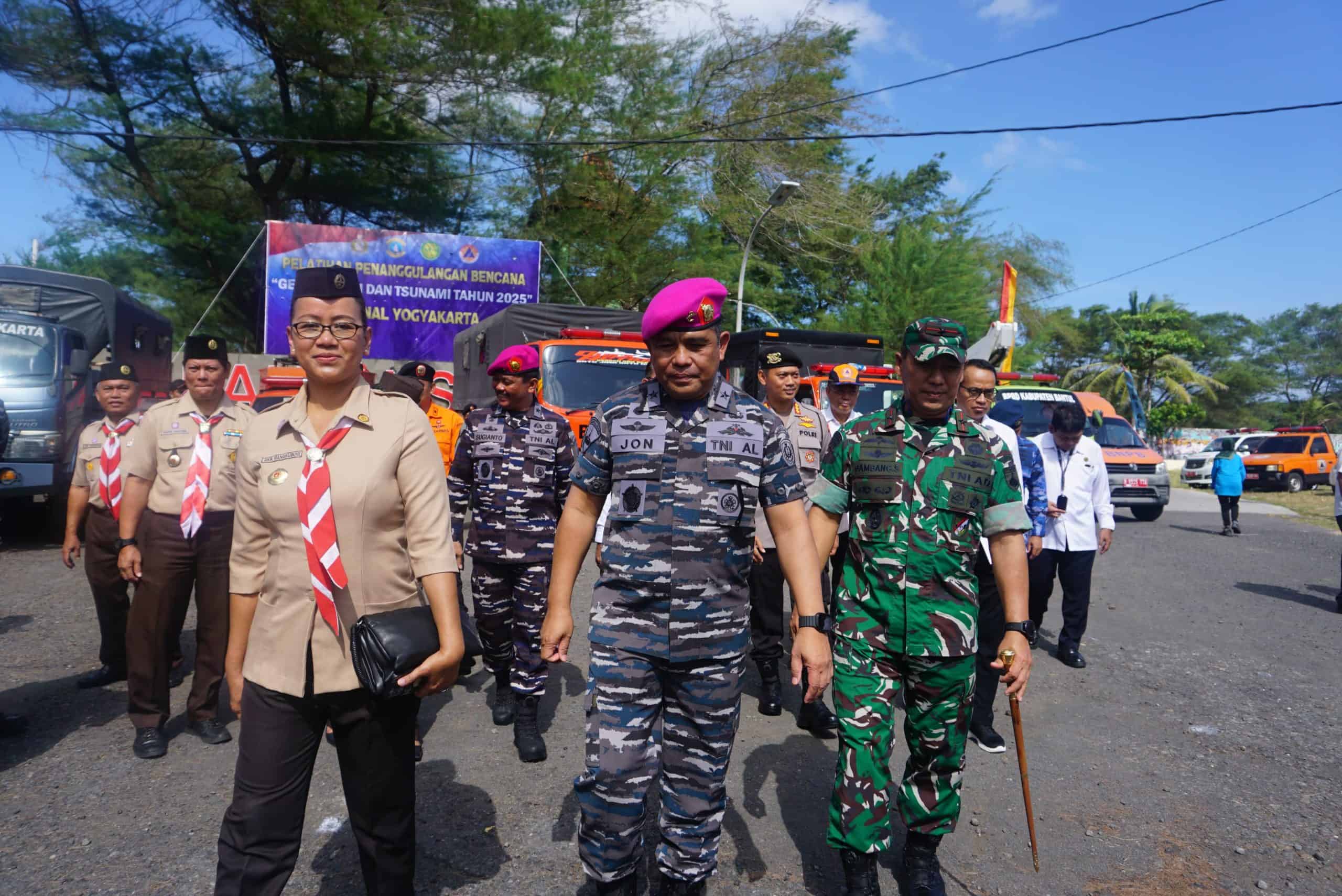 RADAR NASIONAL,--(Bantul),- Dalam rangka peningkatan kesiapsiagaan dan kemampuan personil Lanal Kota Yogyakarta gelar pelatihan penanggulangan Bencana Gempa Bumi dan Tsunami di Terminal Pantai Samas, Srigading Kapanewon Sanden, Bantul Rabu (11/6/2025).