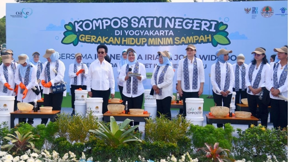 Ajakan tersebut disampaikan Iriana Jokowi saat melakukan pembuatan kompos bersama sejumlah perwakilan PKK, Dekranasda, dan aktivis lingkungan di Daerah Istimewa Yogyakarta (DIY).