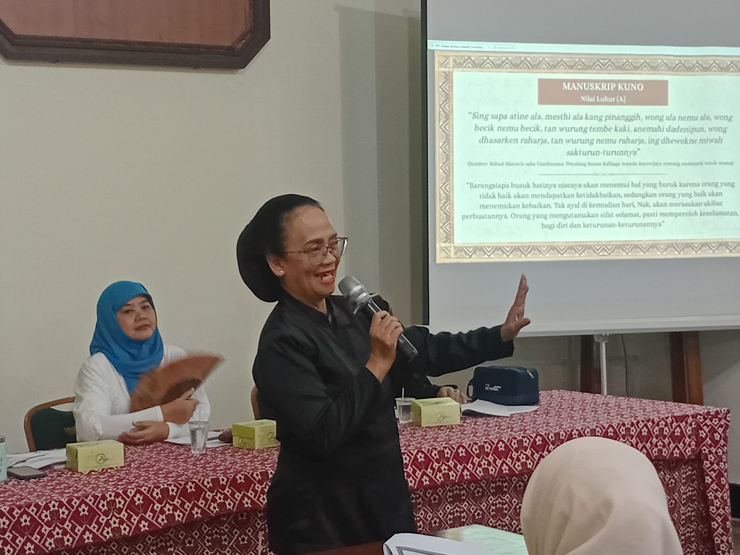 “Ada nilai nilai yang masih hidup dari sosok perempuan yakni empati, nalar, penting juga berupaya ihtiar yang terungkap dalam manuskrip kuno di Pura Pakualaman seperti Babad Metawis, Candranata,tentang Panembahan Senopati, ada nilai piwulang piwulangnya.”ungkap