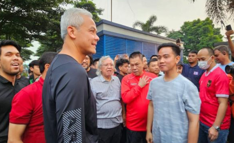 RADARNASIONAL – Bacapres PDIP Ganjar Pranowo lari pagi di Jalan Pahlawan, Citereup, Kabupaten Bogor, Jawa Barat, Sabtu (22/7).