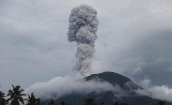 RADARNASIONAL – Gunung Ibu yang berada di Pulau Halmahera Barat, Maluku Utara, pada Senin (25/9) pukul 07.12 WIT. Tinggi kolom letusan mencapai 1,5 Km dari atas puncak atau 2,8 Km dari atas permukaan laut.