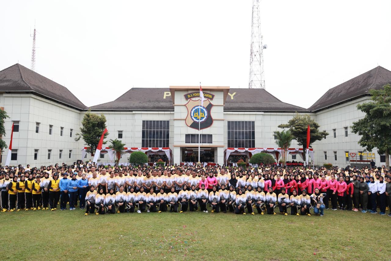 Bahkan, Kapolda DIY beserta Pejabat Utama Polda DIY, Kapolres/ta Jajaran dan Bhayangkari Daerah DIY pun turut bergabung untuk senam.