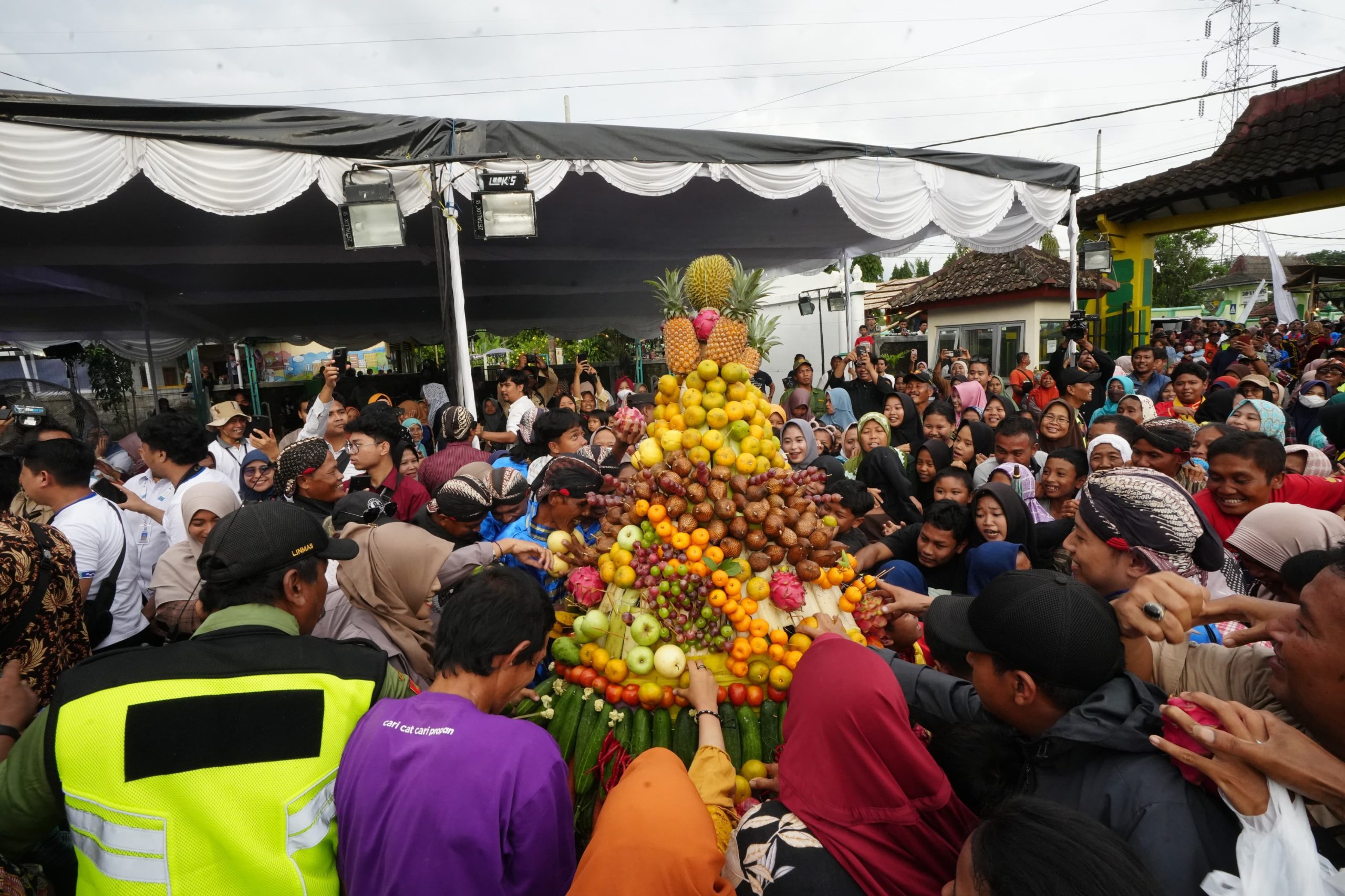 Interaksi yang seakan tanpa jarak, Gus Ipul juga ikut memberikan doa dalam tradisi gunungan yang diadakan di Pondokrejo. “Semoga sehat kabeh (semua),” ujarnya.