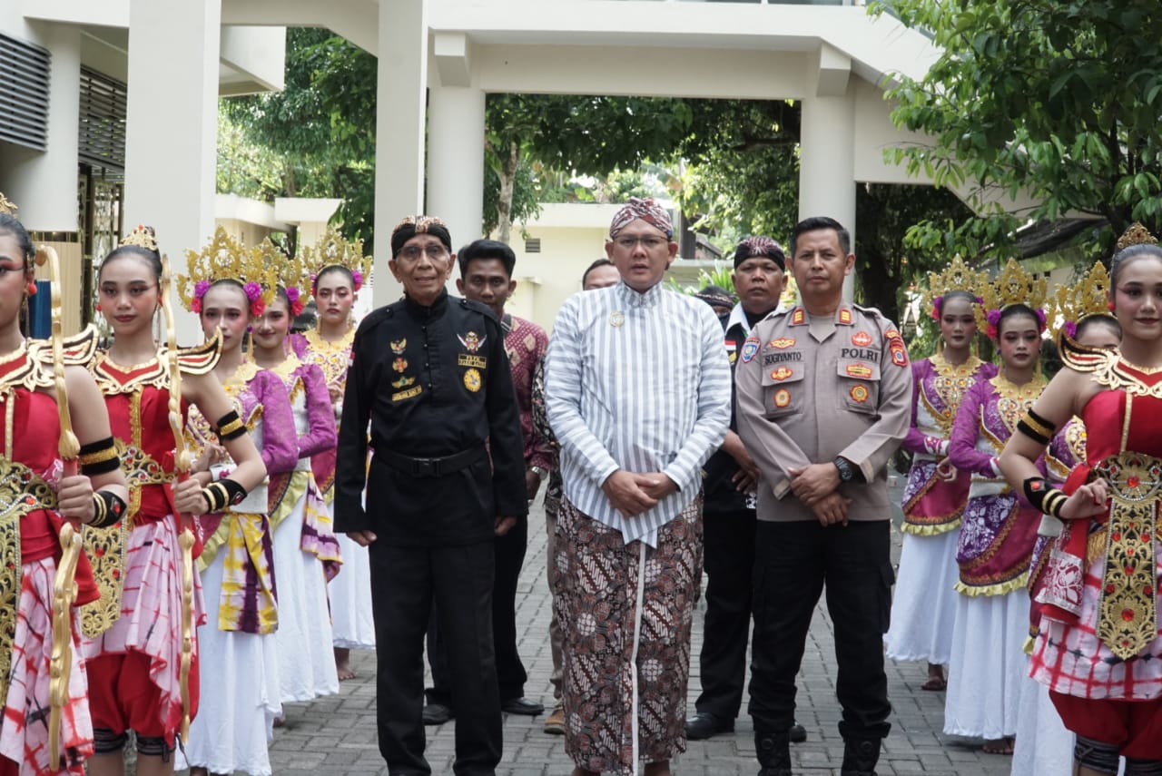 Mengenakan busana adat Jawa, Danang didampingi Ketua Umum M Suhud yang juga sebagai pendiri disambut kehadirannya oleh barisan prajurit bregada menuju Pendopo Parasamya.