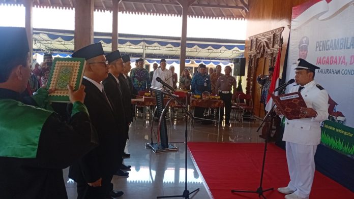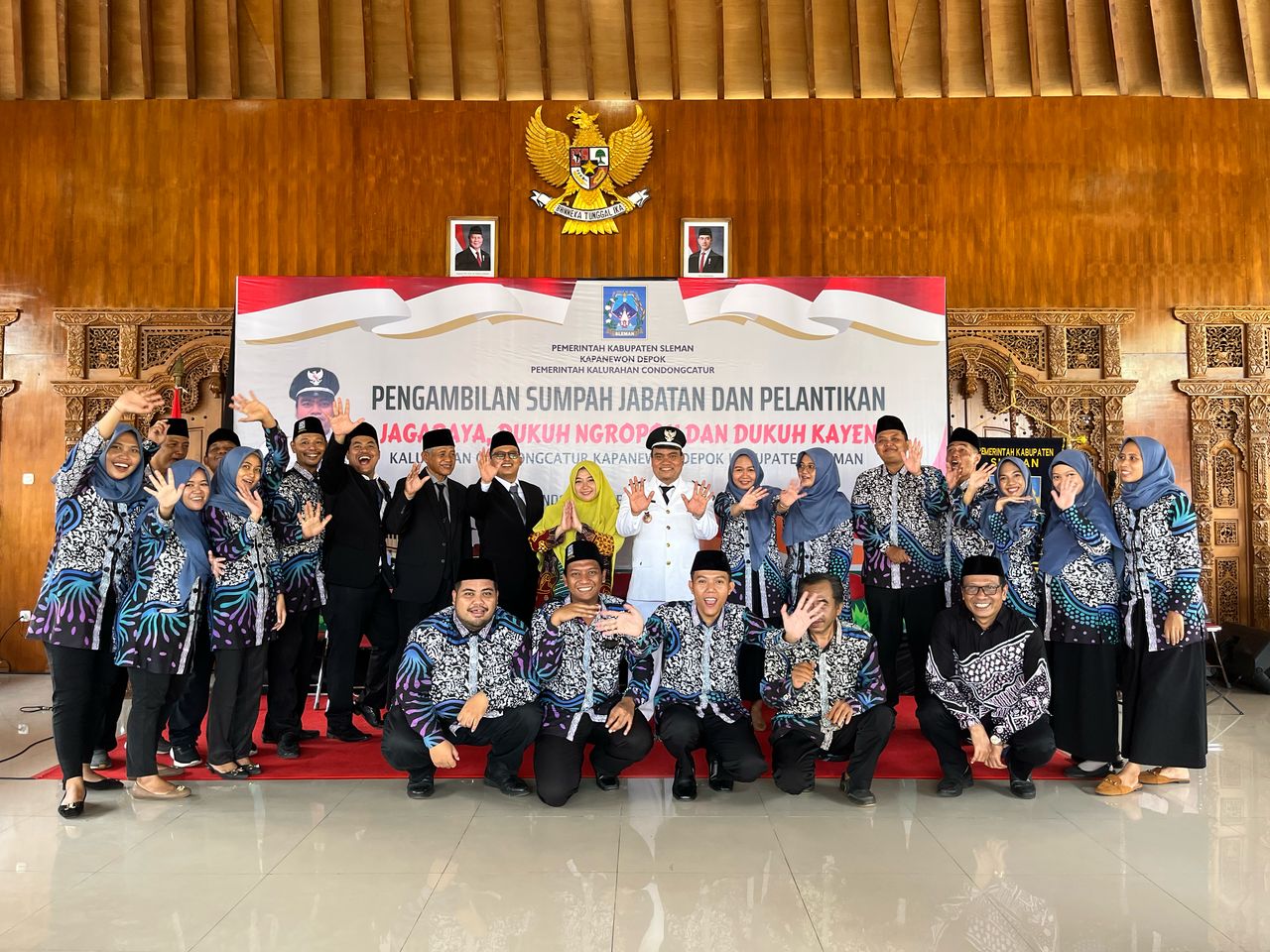 Prosesi pelantikan pengambilan sumpah Jagabaya dan Dukuh dipimpin Lurah Condongcatur, Reno Candra Sangaji, S.IP, M.IP menghadirkan 2 orang saksi Ketua BPKal. Condongcatur Sunarto,S.Sos, dan Ulu-ulu Murgiyanta, SE didampingi Rohaniawan Kepala KUA Depok Rohaniwan Abu Hanifah, S.Ag, M.S, dan Pendeta Gembala Jemaat GBI Gloria Kayen Catur Ari Krisnanto, M.Th.