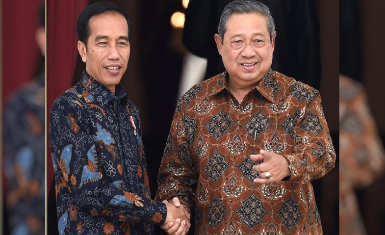Kedua tokoh nasional itu tampak sama-sama mengenakan batik. Jokowi dan SBY terlihat mesra dan berbincang akrab menuju kendaraan.