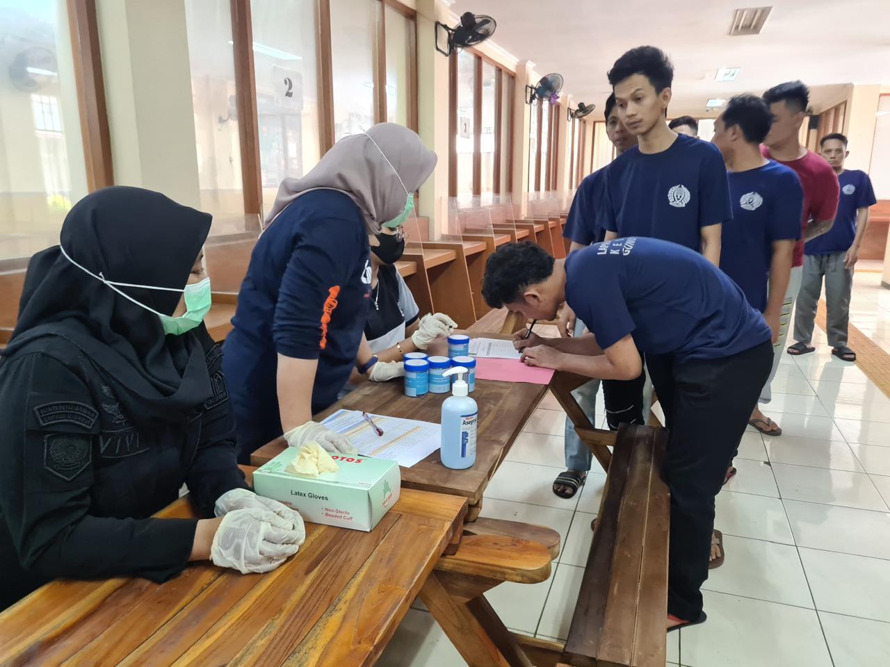 RADARNASIONAL– Petugas Lembaga Pemasyarakatan (Lapas) Khusus Kelas IIA Gunung Sindur, Bogor, Jawa Barat dibantu BNN, TNI-Polri melakukan razia kamar hunian dan tes urine warga binaan pemasyarakatan (WBP) pada Jumat (27/9) petang.
