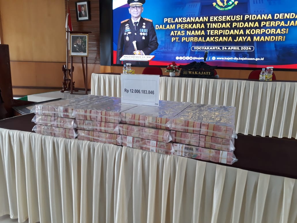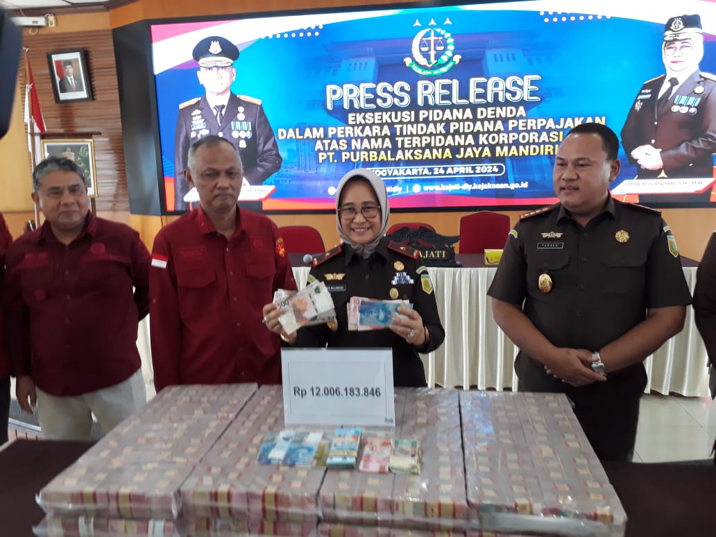 Menurutnya, eksekusi sesuai Putusan Mahkamah Agung RI No. 291K/Pud.Sus/2024 tanggal 7 Maret 2024 jo.Putusan Pengadilan Tinggi Yogyakarta No.:20/Pid. Sus/2023/PT YYK tanggal 27 Maret 2023 jo.Putusan PN Bantul No.: 241/Pid.Sus/PN.Btl tanggal 6 Februari 2023 yang sudah berkekuatan hukum tetap dimana terpidana korporasi PT. Purbalaksana Jaya Mandiri melanggar ketentuan pasal 39 ayat 1 huruf d Undang-Undang No. 28 Tahun 2007 tentang Perubahan ketiga atas Undang-Undang No.6 tahun 1983 tentang ketentuan umum dan Tata Cara Perpajakan sebagaimana telah beberapa kali diubah dan ditambah terakhir dengan Undang Undang No.: 7 Tahun 2021 tentang Harmonisasi Peraturan Perpajakan yaitu dengan sengaja menyampaikan surat pemberitahuan dan atau keterangan yang isinya tidak benar atau tidak lengkap sehingga dapat menimbulkan kerugian pada pendapatan negara dengan putusan menjatuhkan pidana denda sebesar 2 x pajak terhutang= 2 x Rp.46.782.765.918,-=Rp.93.565.531.836,- ( sembilan puluh tiga milyar lima ratus enam puluh lima juta lima ratus tiga puluh satu ribu delapan ratus tiga puluh enam rupiah).