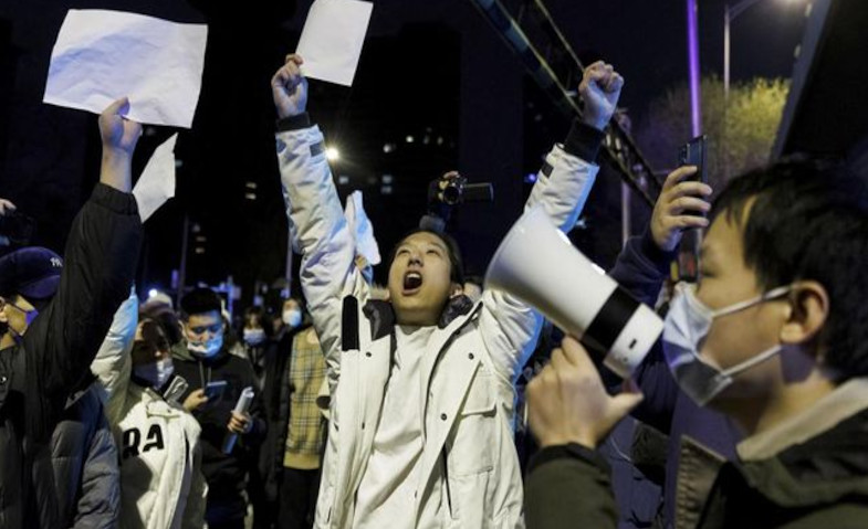 CHINA – Para pengunjuk rasa yang frustrasi dan marah dengan ketatnya kebijakan penanggulangan COVID-19 di Cina, berunjuk rasa menuntut Xi Jinping mundur. Unjuk rasa yang digelar di Shanghai dan tujuh kota lainnya di Republik Rakyat Cina, Ahad (27/11) itu menjadi unjuk rasa pertama yang berani menuntut turunnya pemimpin Cina yang disebut-sebut kian menjelma menjadi diktator tersebut.