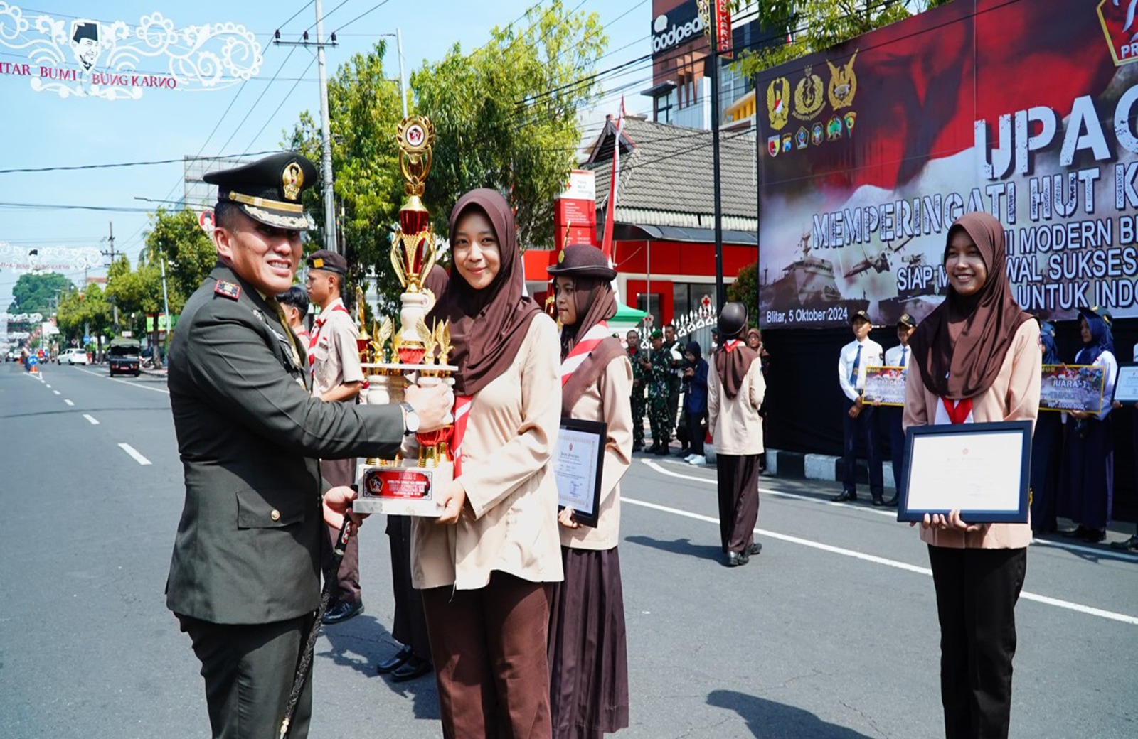 Dalam kesempatan diadakan pembagian hadiah lomba dalam rangka menyemarakkan HUT ke 79 TNI diantaranya lomba Baris Berbaris Tingkat SLTP/SLTA Se Blitar Raya, Bola Volly dan Tenis Meja di Sektor Koramil wilayah Kodim 0808/Blitar (Sani).