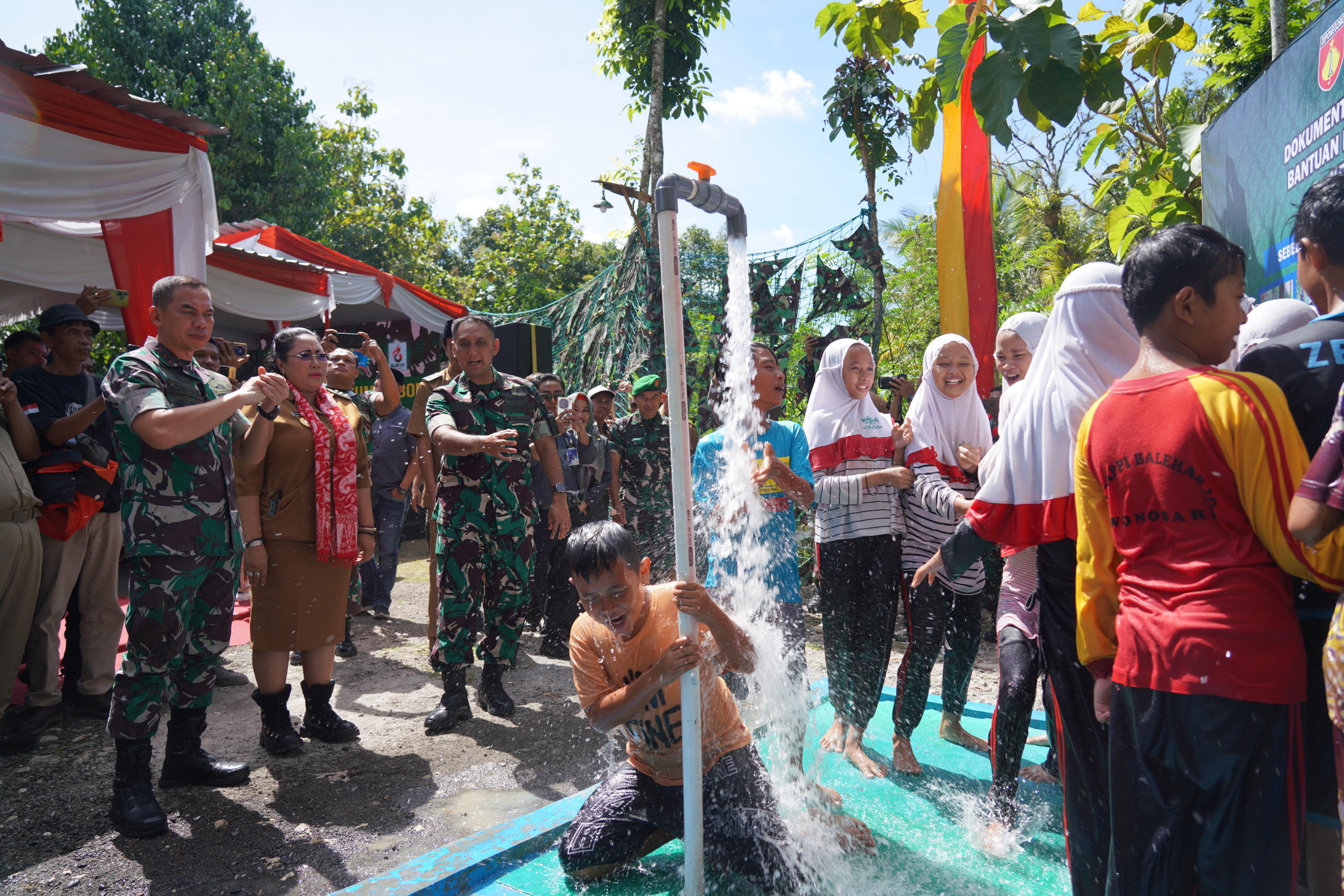 Kegembiraan mewarnai peresmian keluarnya air bersih , masyarakat antusias menyambut peresmian ini dengan penuh kegembiraan, yang selama ini masyarakat mendambakan adanya bantuan air bersih. Hariini menjadi kenyataan dengan diresmikan sumur bor, dengan harapan kedepan mereka untuk mendapatkan akses air bersih yang layak akhirnya terwujud.