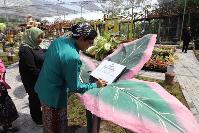 Mendes PDTT menandatangani prasasti menandai peresmian Anglaonema Park sebagai destinasi wisata di Sleman. (*)