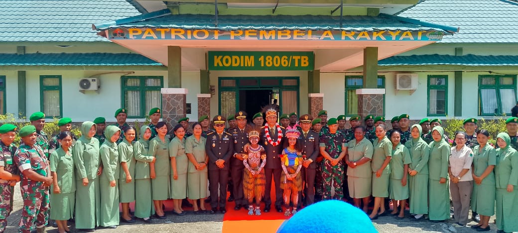 Kunjungan Pangdam XVIII disambut hangat dan nampak berfoto bersama a sebagai moment bersejarah kunjungan Pangdam di Kodim 1806/Teluk Bintuni.(Radnas-Ist)