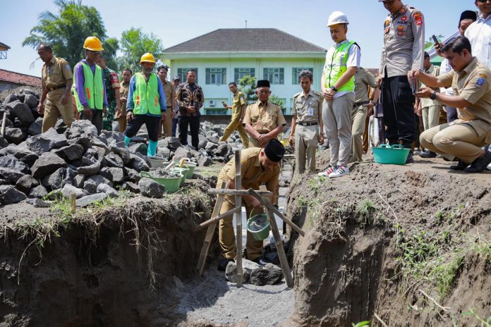 RADAR NASIONAL,–Bupati Sleman Harda Kiswaya melakukan peletakan pertama pembangunan Gedung Serbaguna Kantor Kalurahan Purwomartani, Kapanewon Kalasan Senin (5/5/2025).