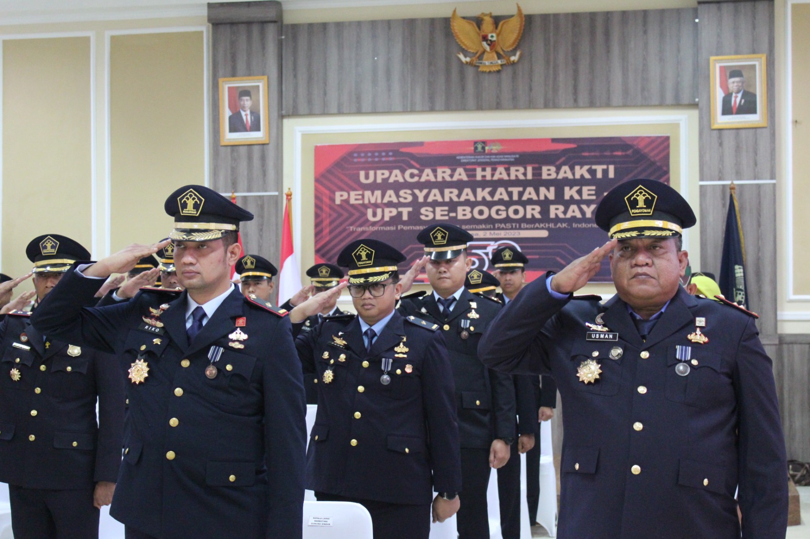 Kepala Lapas Narkotika Kelas IIA Gunung Sindur Riko Stiven beserta para Kepala UPT Pemasyarakatan se- Bogor Raya mengikuti upacara Hari Bhakti Pemasyarakatan ke-59 tersebut secara virtual.