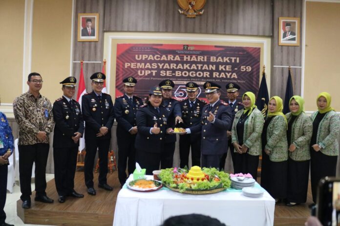 Diketahui, seusai mengikuti upacara peringatan HBP ke-59 secara virtual, jajaran Pemasyarakatan se-Bogor Raya itu melanjutkan kegiatan yakni pemotongan tumpeng sebagai tanda syukur.