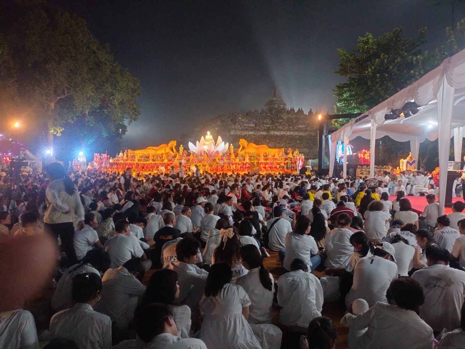 RADAR NASIONAL,— Ribuan  umat Budha  memadati kawasan   Candi Borobudur tempat berlangsungnya upacara Perayaan  Waisak 2569 BE ( Buddhist Era) dengan tema :  Tingkatkan  Pengendalian  Diri  dan  Kebijaksanaan”, di komplek Candi  Borobudur, Magelang, Jawa  Tengah.Senin (12/5/2025)