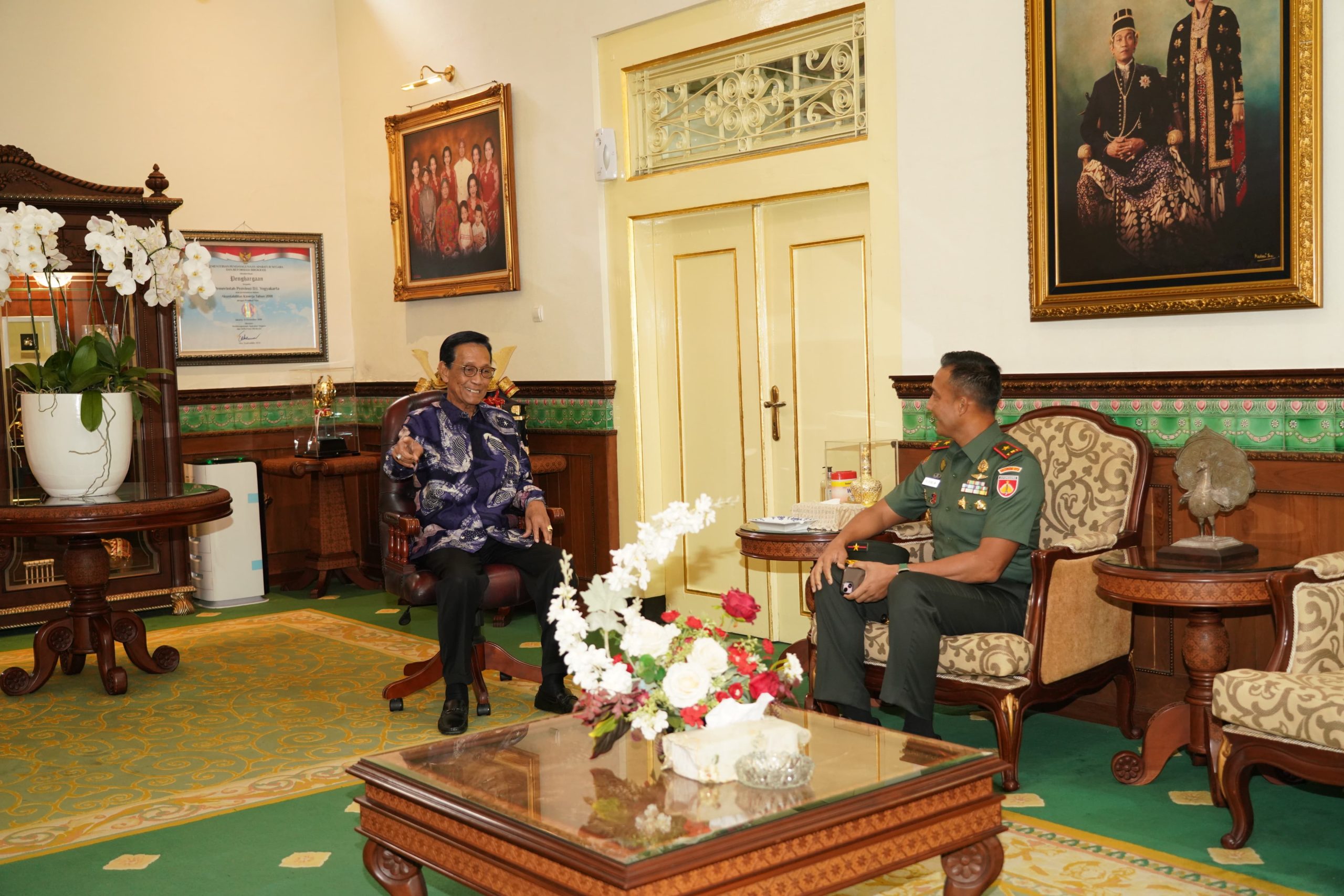 RADAR NASIONAL -(Yogyakarta),- Komandan Korem 072/Pamungkas, Brigjen TNI Yuniar Dwi Hantono, S.Sos., M.Si., M.Sc., melaksanakan silaturahmi dengan Gubernur Daerah Istimewa Yogyakarta, Sri Sultan Hamengku Buwono X bertempat di Gedhong Wilis, Kompleks Kepatihan Yogyakarta. Selasa (7/4/2026).