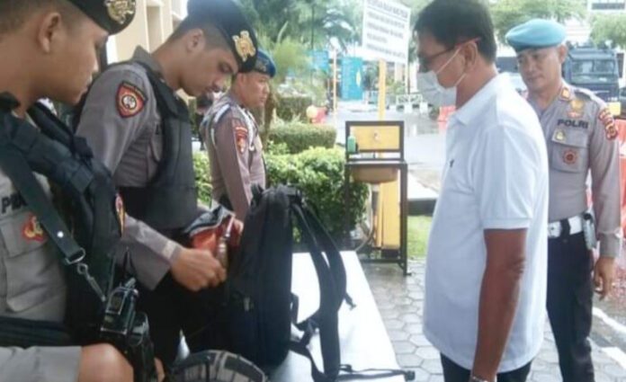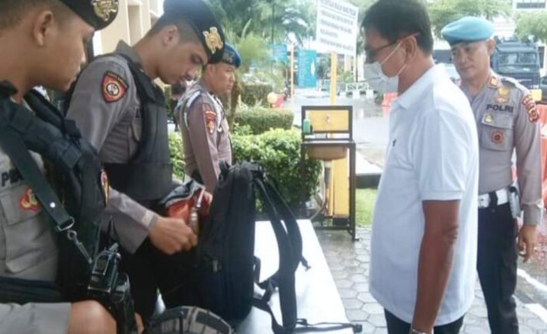 RADARNASIONAL – Tidak seperti sebelumnya, pengamanan di gerbang Mapolda Jambi diperketat. Setiap pengunjung yang masuk ke kantor polisi itu akan diperiksa bawaannya, termasuk isi tas.