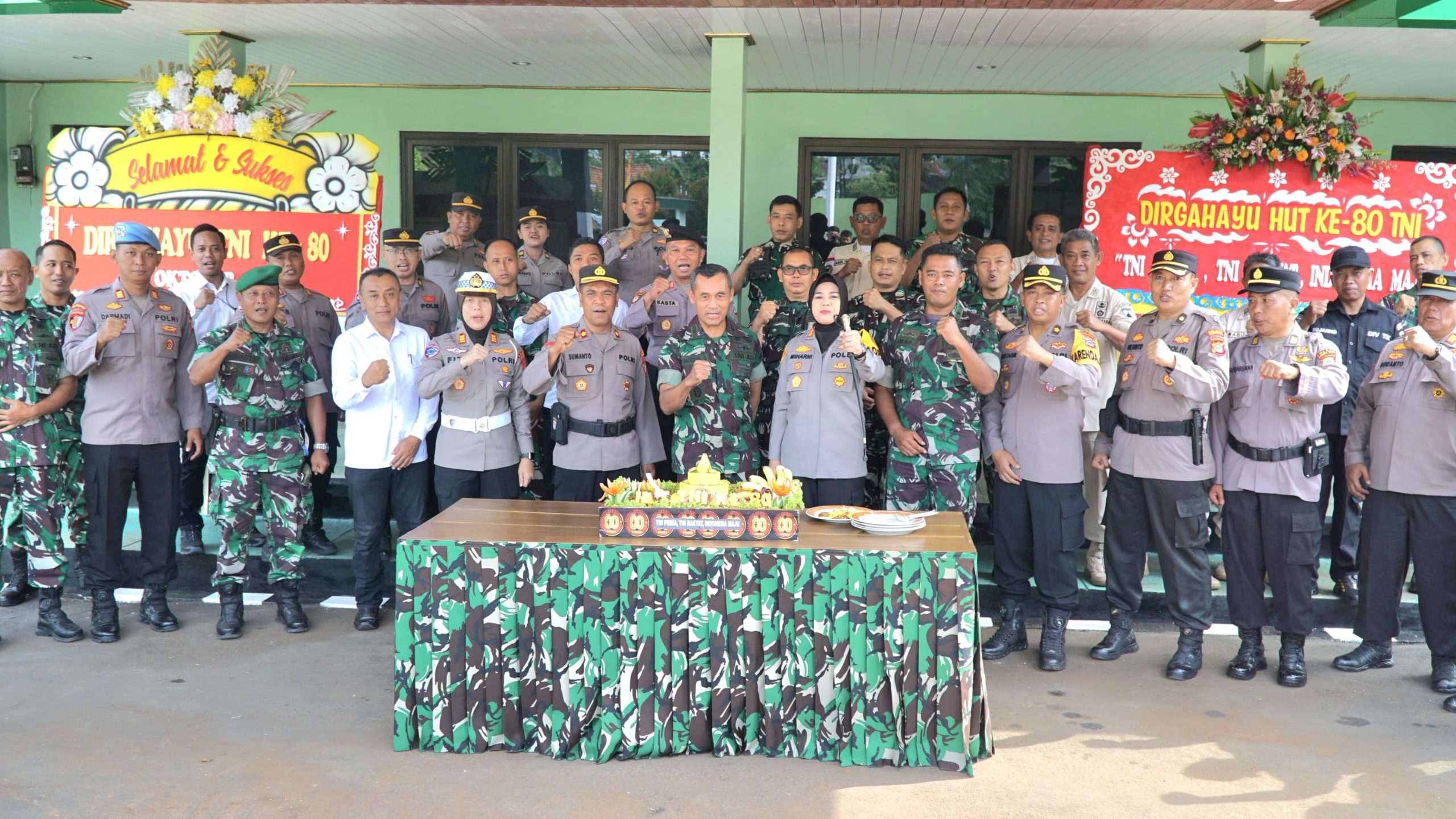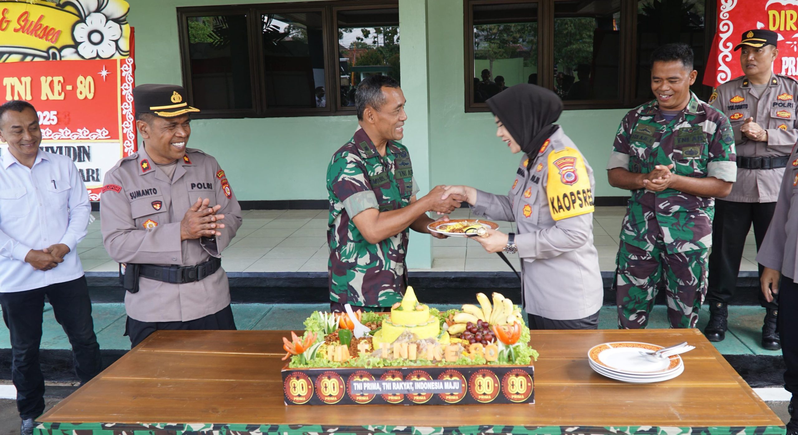 Dalam suasana penuh kekeluargaan, kegiatan di tandai dengan pemotongan Nasi tumpeng dan pemberian ucapan selamat. Momen tersebut menjadi simbol soliditas dan sinergitas yang kuat antara TNI dan Polri di wilayah Kabupaten Gunungkidul.