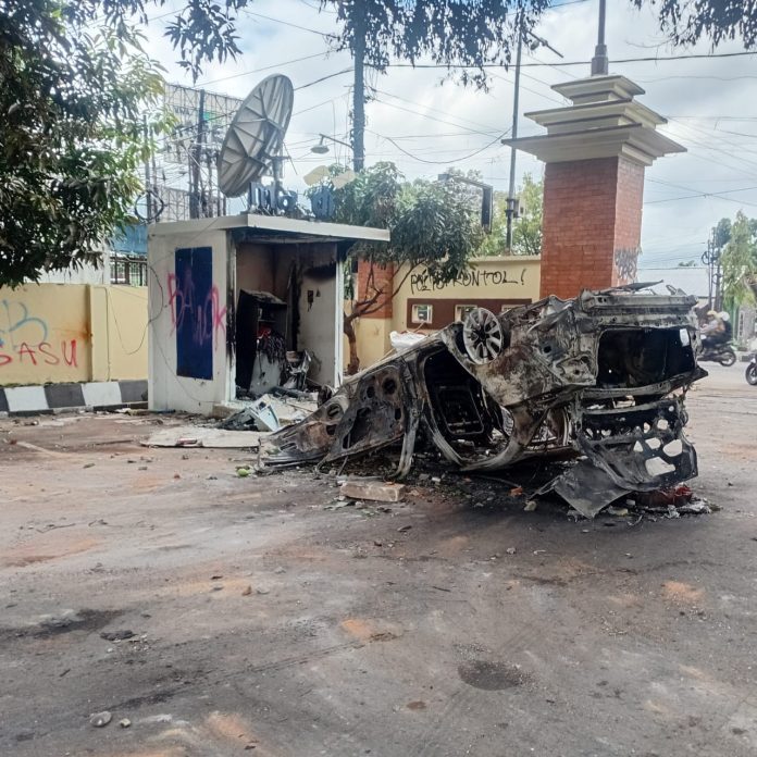 Kerusakan seperti  fasilitas, ruang  pelayanan,ruang piket jaga, mobil,ATM ,pagar, baliho,papan nama  Polda. Salah seorang warga Klaten, Sunaryo  mengaku membidikan   ponsel, setelah  melihat  lewat ponsel tentang kerusuhan  yang  dijumpai  di ponselnya. (R)
