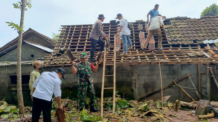 Warga bersama Babinsa gotong royong perbaiki rumah yang tertimpa pohon jati. Radnas /Istimewa