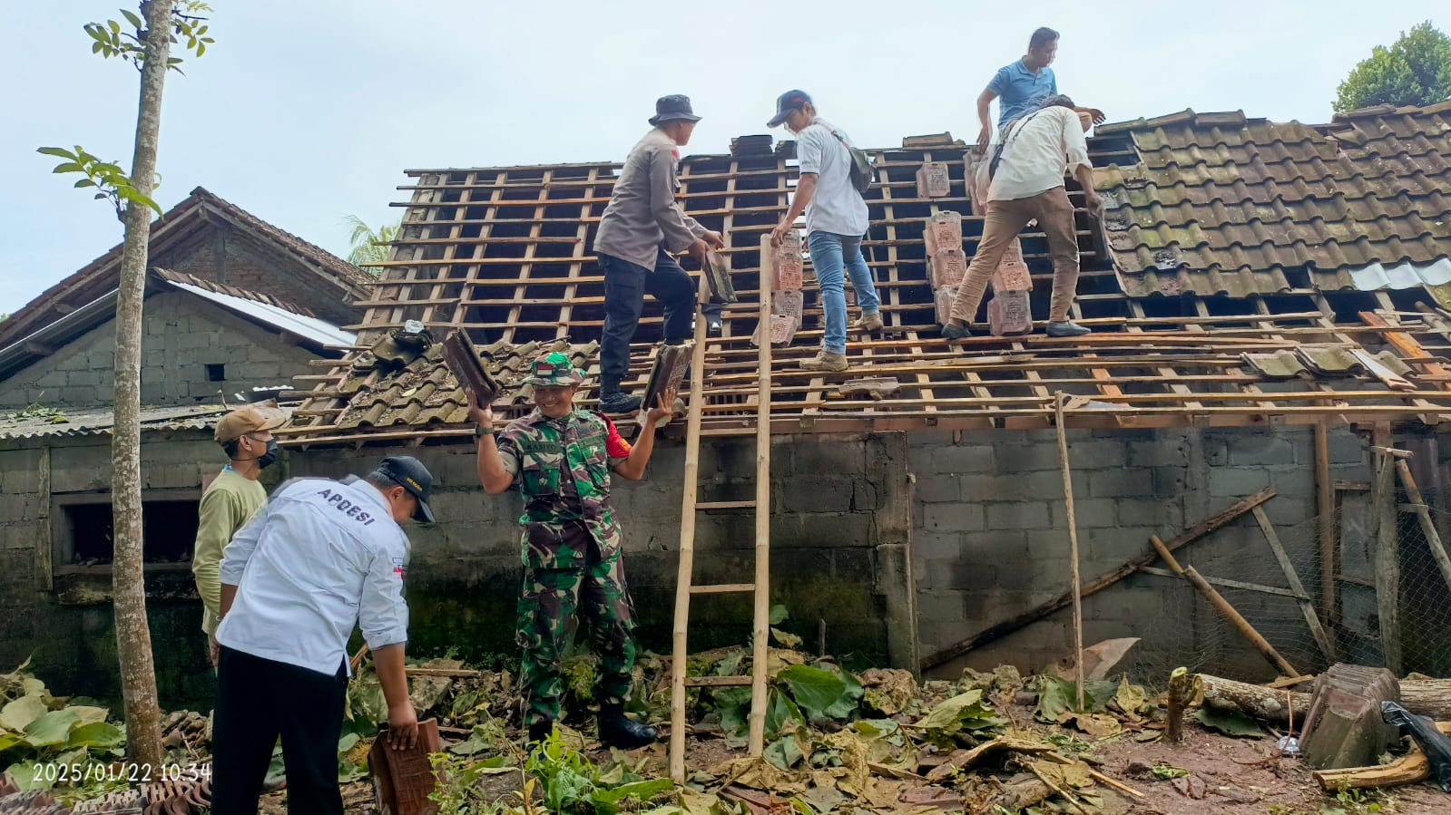 “Atas kejadian tersebut  kami lakukan gotong royong memperbaiki rumah. Kami libatkan Babinsa Koramil 01/Wonosari Kodim 0730/Gunungkidul untuk membantu warga ,” jelas Danramil.