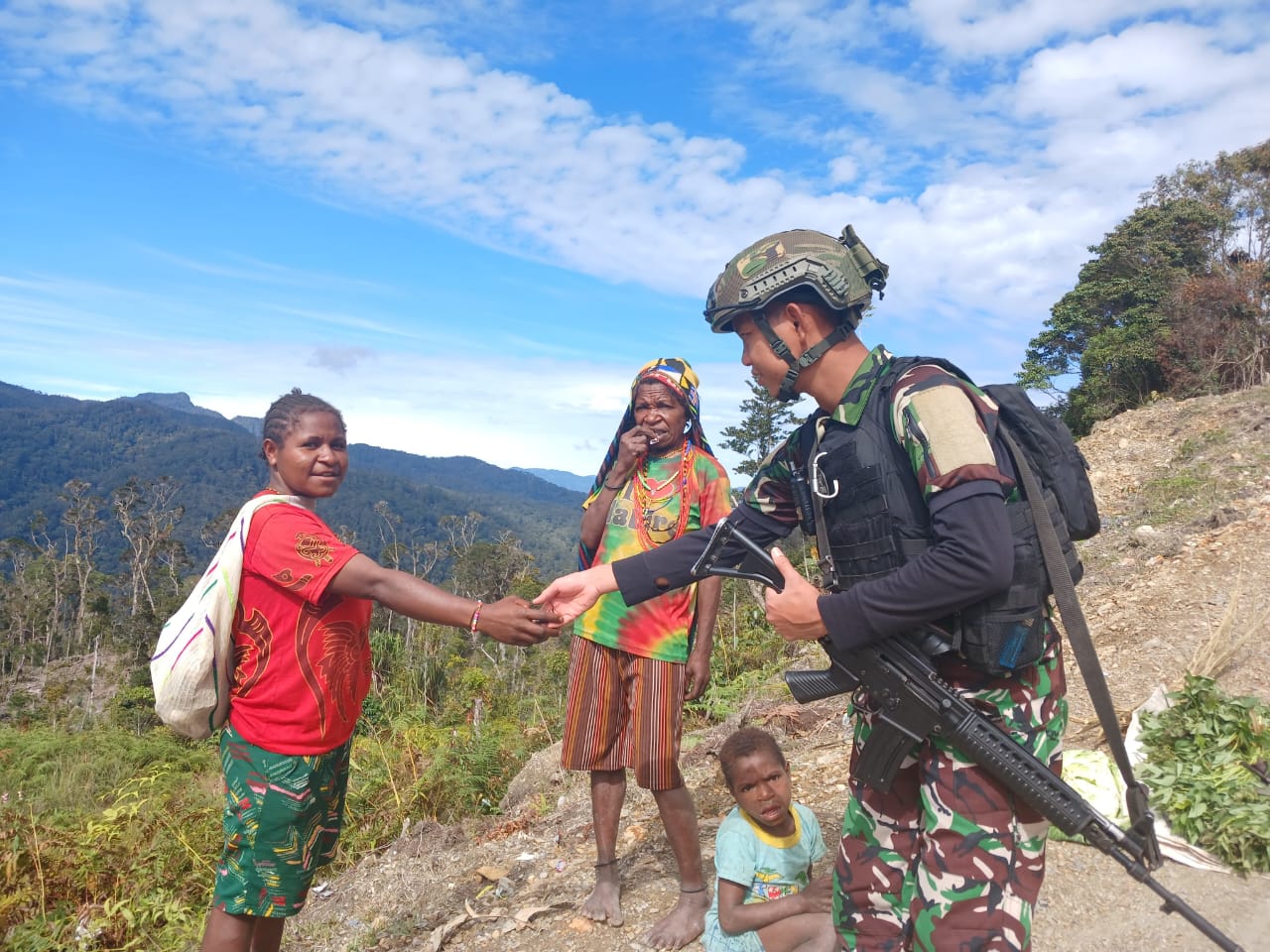 Satgas Yonif 509 Kostrad, pimpinan Lettu (Inf) Waianto  di Pos khususnya Pos Holomama melaksanakan program ROSITA atau Borong Hasil Tani milik warga Kampung Mbilusiga, Distrik Sugapa, ketika pelaksanaan patroli pengamanan wilayah.