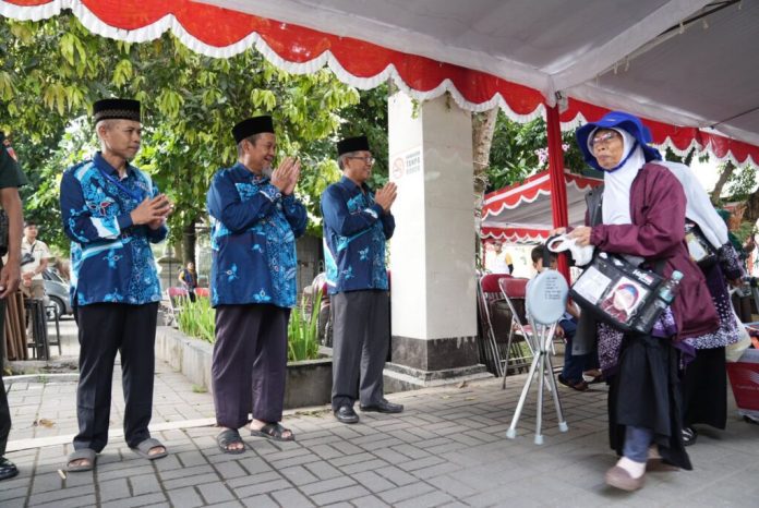 Sekda Kabupaten Sleman, Susmiarto mengucapkan selamat kepada para calon jamaah haji yang akan diberangkatkan ke tanah suci.