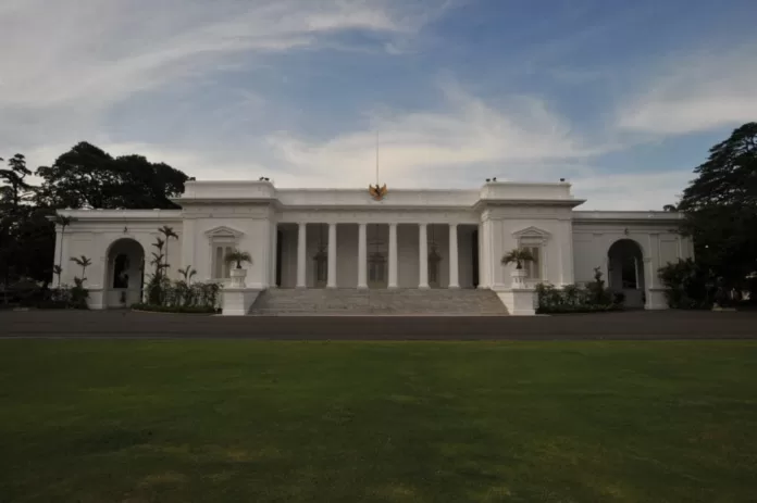 Dari pembatas jalan, perempuan tersebut terlihat menuju area pagar istana yang merupakan zona “Ring 1” Paspampres.