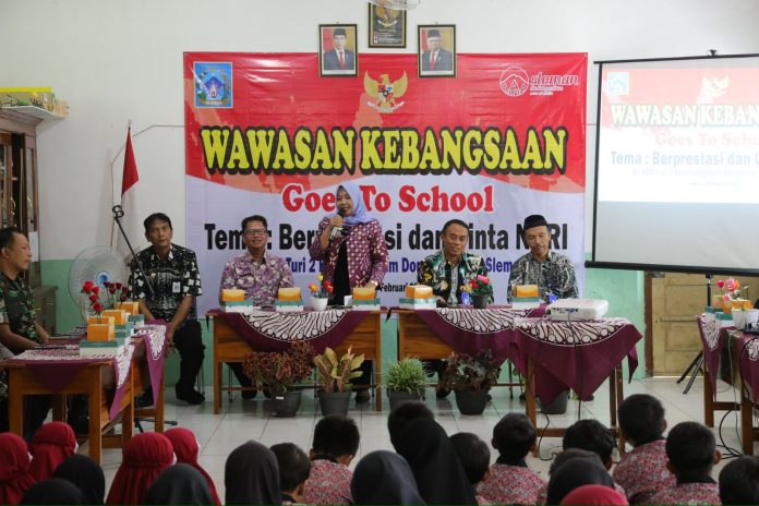 RADARNASIONAL – Sebagai upaya meningkatkan pemahaman dan menanamkan wawasan kebangsaan generasi penerus bangsa, Pemerintah Kabupaten Sleman melalui Badan Kesabangpol Sleman menyelenggarakan Wawasan Kebangsaan Goes to School di SD Negeri 2 Turi, Kamis (15/2/2024).