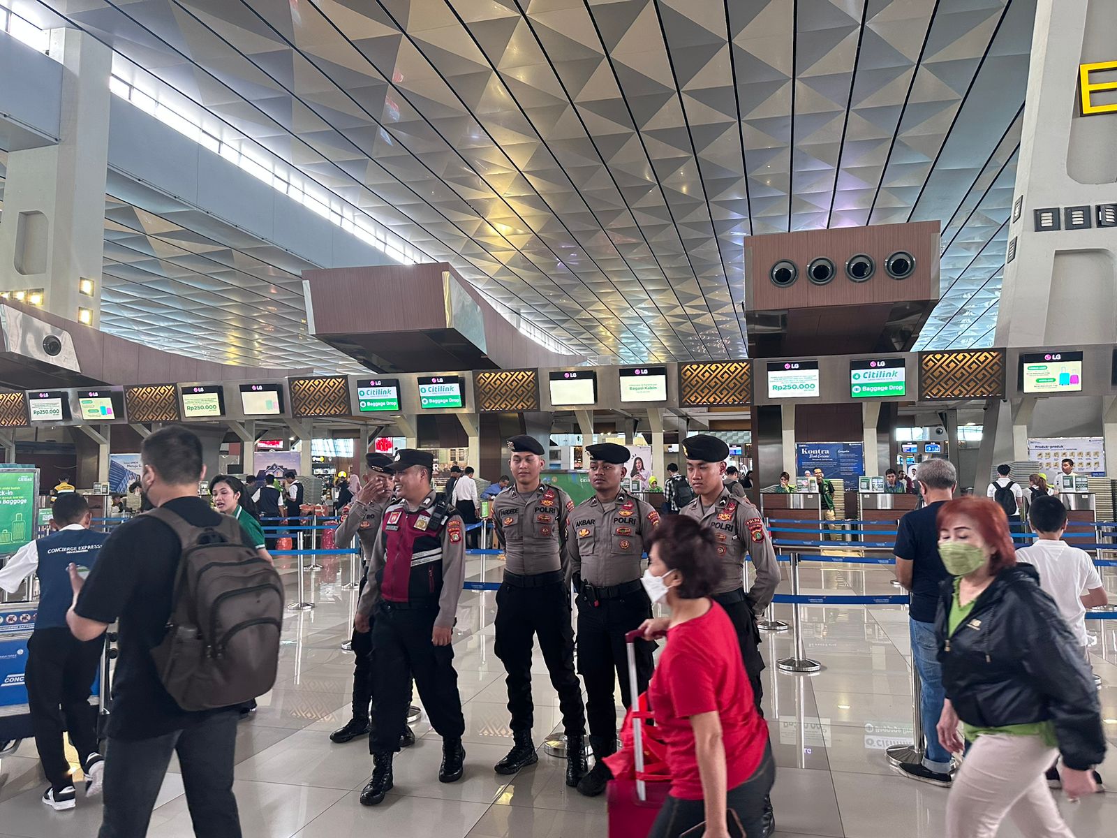 “Terima kasih kepada bapak-bapak polisi Bandara Soetta. Kami merasa aman dan terlindungi,” kata Hendrik Sutanto seraya bercerita bahwa dirinya datang dari Surabaya hendak ke Jakarta.