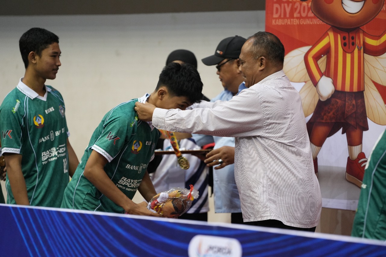 Bupati Sleman, Harda Kiswaya hadir secara langsung sekaligus menyematkan medali dan menjadi saksi kemenangan tim futsal putra putri Kabupaten Sleman.