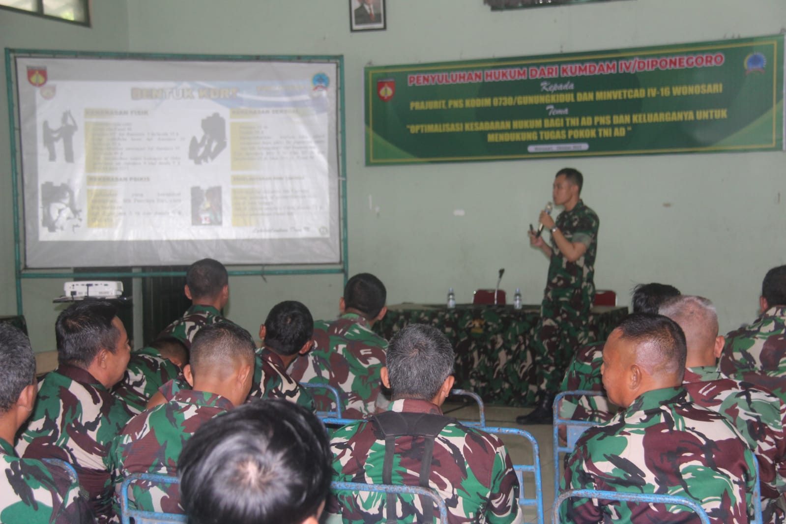 Penyuluhan Hukum menghadirkan Tim dari Komando Hukum Daerah Militer (Kumdam) IV/Diponegoro, merupakan bagian dari program kerja bidang personel, khususnya dalam rangka pembinaan dan penegakan hukum di lingkungan TNI AD, dengan tujuan utama untuk meningkatkan disiplin dan kesadaran hukum di kalangan prajurit dan keluarga.