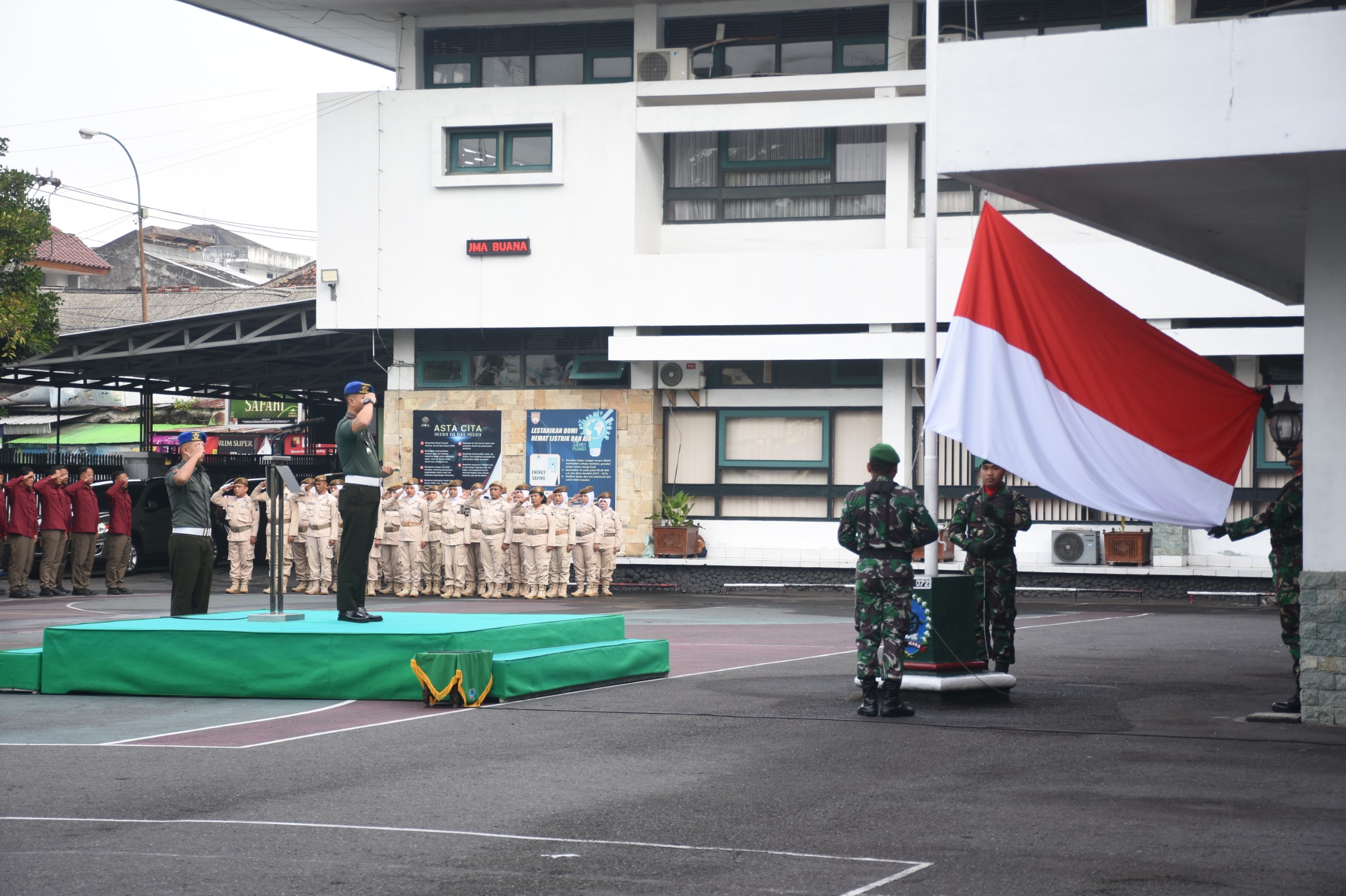 Rangkaian upacara dimulai dengan pengibaran Bendera Merah Putih, mengheningkan cipta, pembacaan Pancasila, pengucapan Sapta Marga Sumpah Prajurit dan Delapan Wajib TNI.