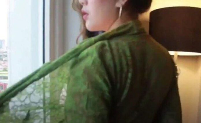 Video berdurasi delapan menit lebih tu menampilkan wanita berkebaya hijau yang mendapat pengarahan dari seorang pria untuk memperlihatkan area terlarangnya.