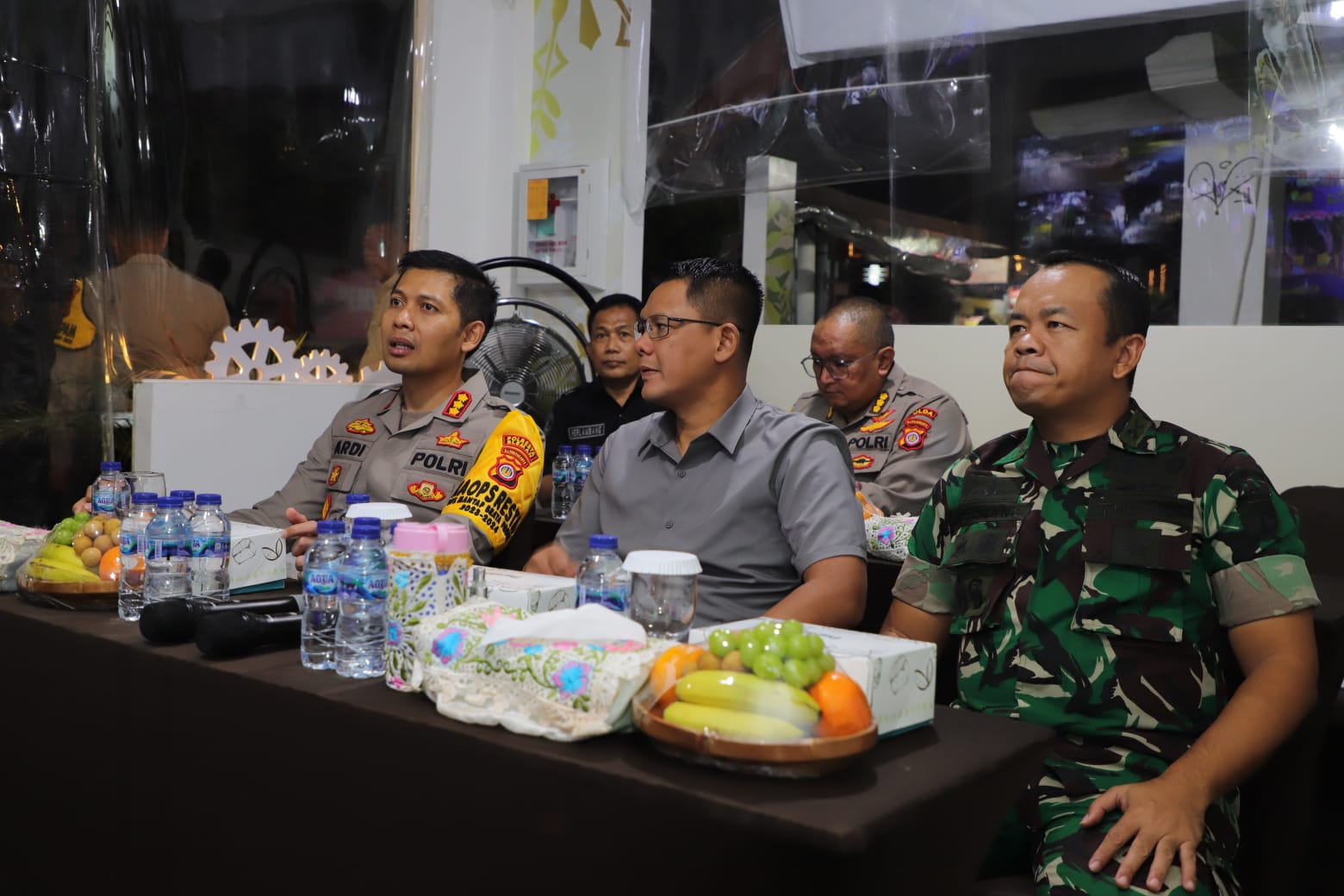 Usai melakukan pemantauan via zoom meeting, Wakil Bupati Sleman bersama Forkopimda menyerahkan sejumlah bingkisan kepada personil yang bertugas di Posko Pengamanan.(San)