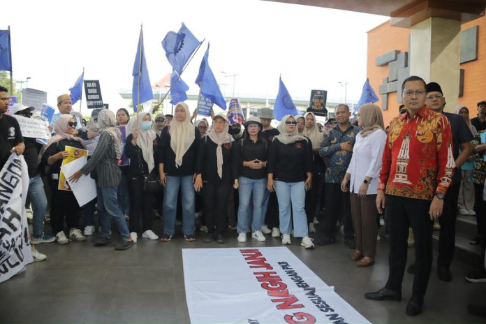 RADAR NASIONAL,-(SLEMAN )– Bupati Sleman Harda Kiswaya bersama Wakil Bupati Danang Maharsa dan jajaran pimpinan DPRD Kabupaten Sleman menerima kembali ratusan pekerja PT Mataram Tunggal Garment (MTG) guna memfasilitasi dialog terkait antara PT MTG dan pekerja yang tergabung Serikat Pekerja.